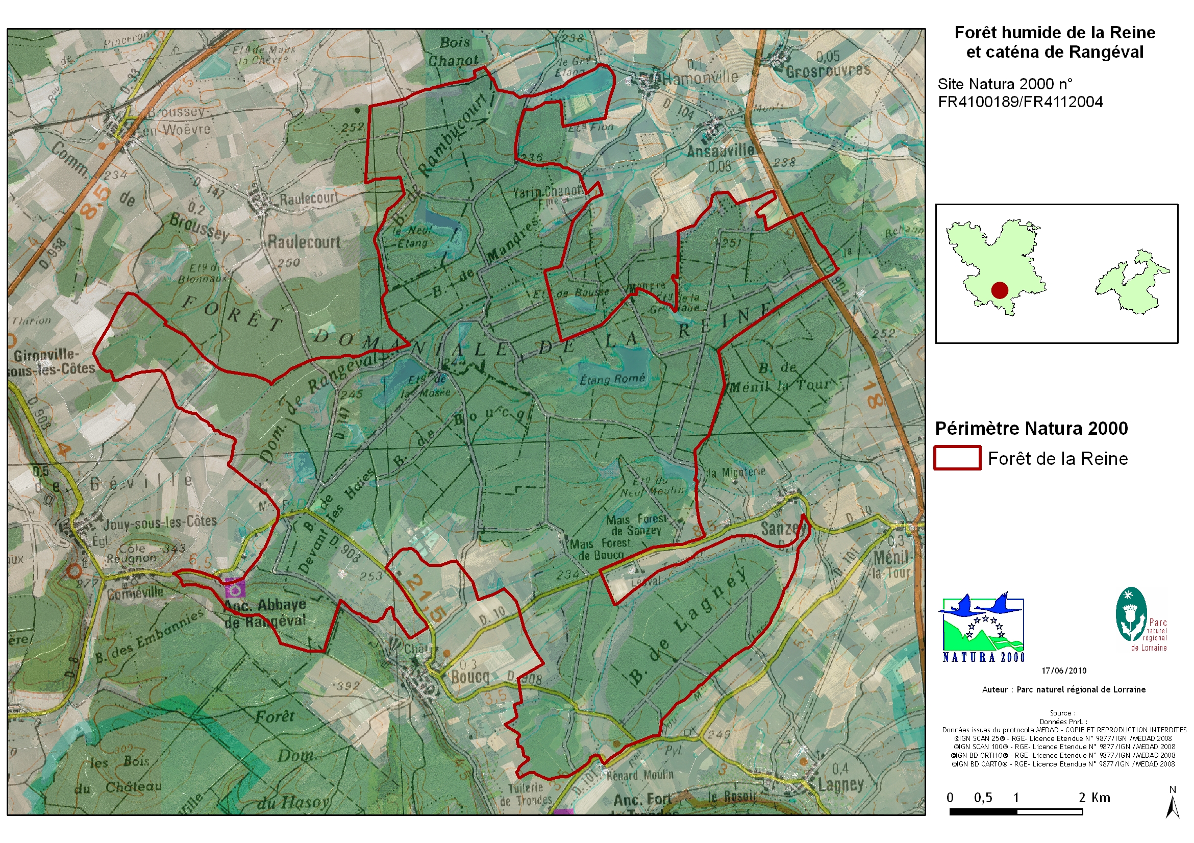 Le site Natura 2000 Forêt humide de la Reine et catena de Rangéval est situé sur les départements de la Meurthe-et-Moselle et de la Meuse, dans la zone est du Parc naturel régional de Lorraine.