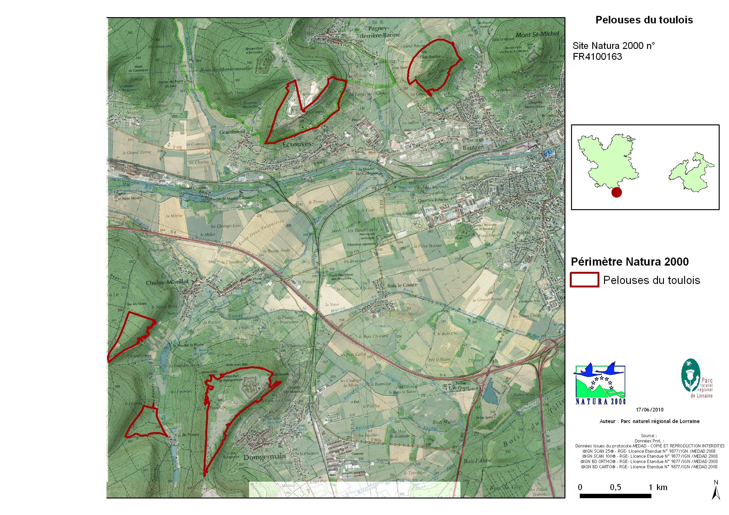 Le site Natura 2000 des pelouses du toulois se situe dans le département de Meurthe-et-Moselle, à l’ouest de Toul, de part et d’autre de la vallée de l’Ingressin, dans la zone ouest du Parc naturel régional de Lorraine.