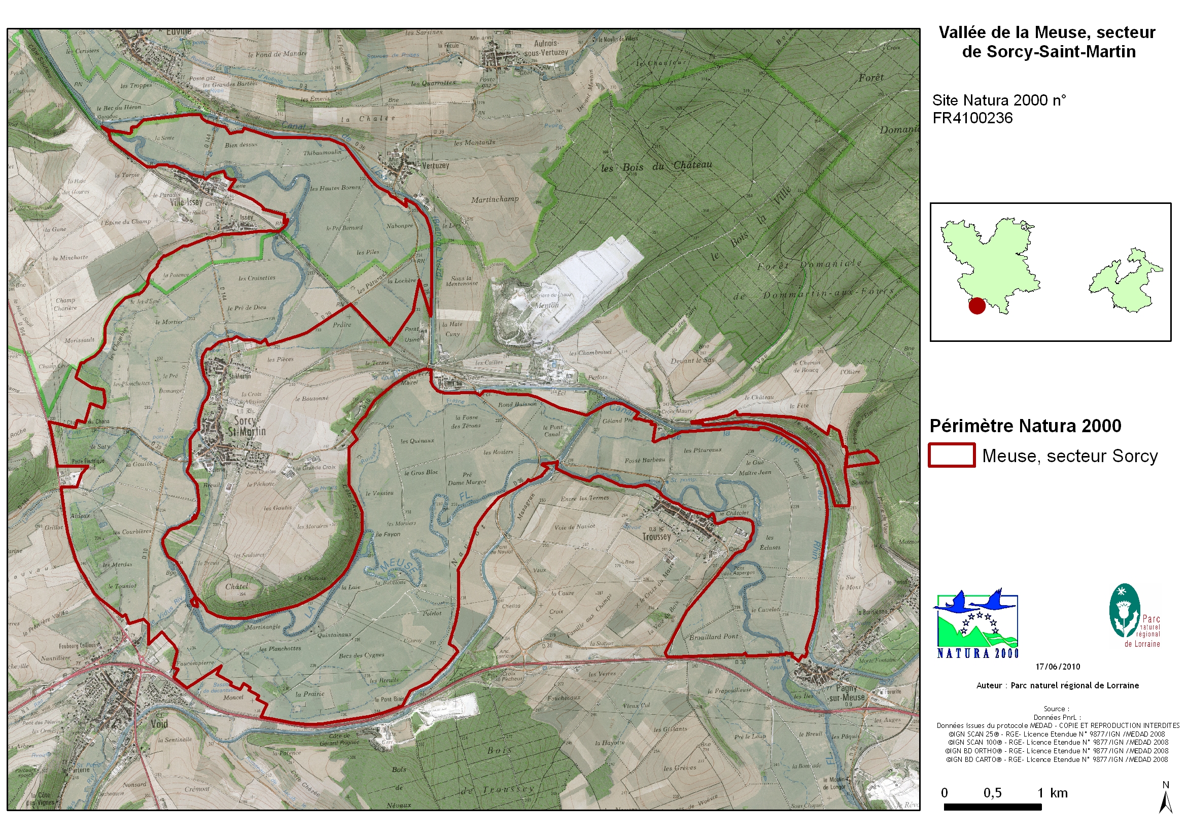 Le site Natura 2000 de la vallée de la Meuse, secteur Sorcy Saint-Martin est situé dans le département de la Meuse, et chevauche la partie ouest du Parc naturel régional de Lorrainesur la commune de Euville.
