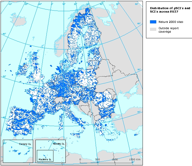 Au sein de l'Europe à 27, près de 5 000 sites Natura 2000 Oiseaux ont été classés Zones de Protection Spéciale pour les oiseaux (ZPS) et près de 22 000 sites Natura 2000 Habitats ont été proposés au titre de la directive "Habitats Faune Flore" pour devenir des Zones Spéciales de Conservation (ZSC).